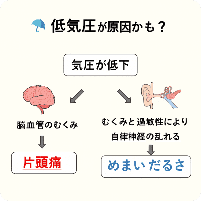まず、頭痛の原因は、耳の奥にある内耳の気圧センサーが敏感に反応し、