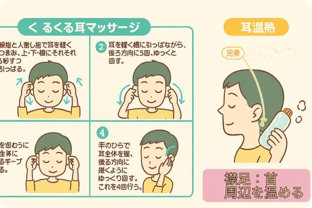 予防とケアについては、内耳の血流を促すくるくる耳マッサージや、