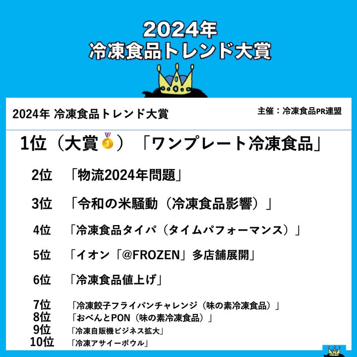 | 4位 | 冷凍食品タイパ | タイムパフォーマンスの高さで冷凍食品がさらに注目。 |