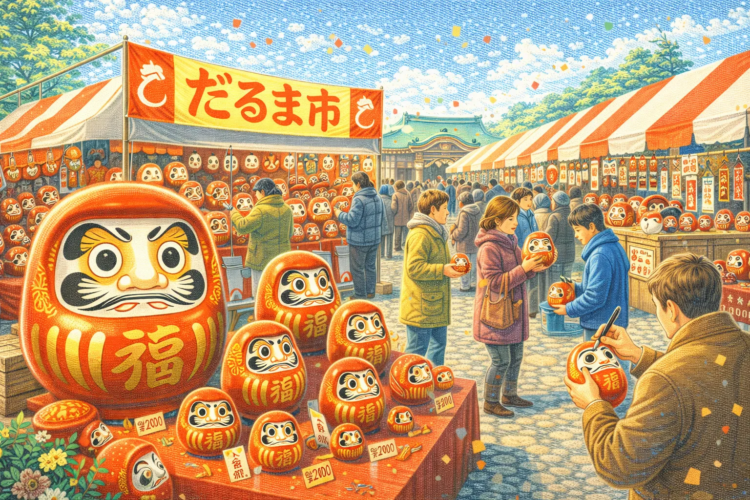 熊谷のだるま市は「まず相場感だけつかんで、2〜3軒見てから買う」これがいちばん失敗しません。