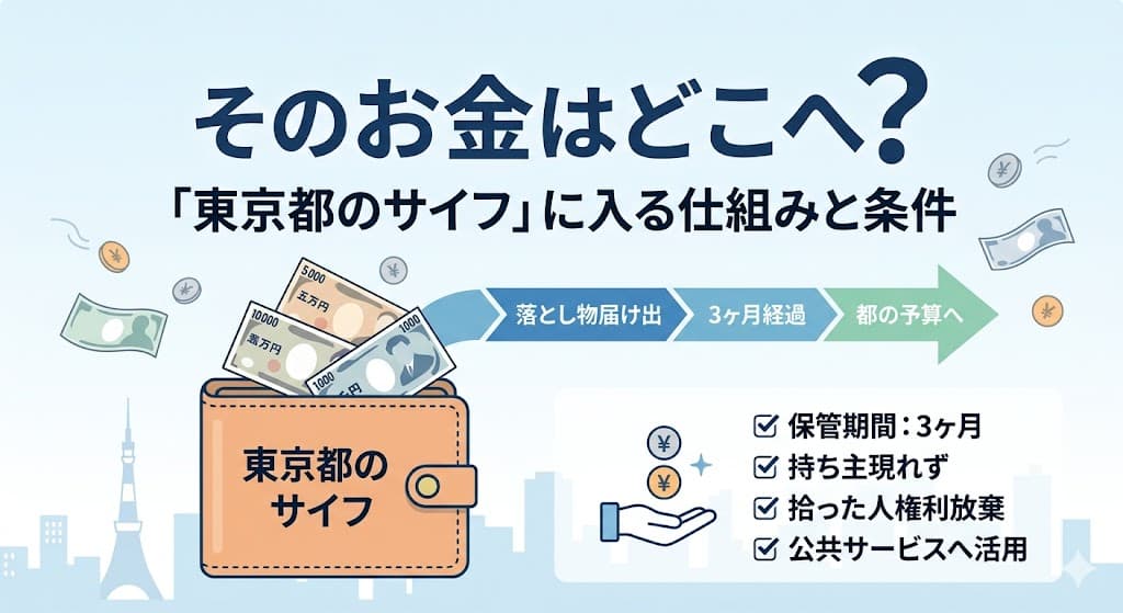 もし、落とし主も現れず、拾った人も権利を放棄したり期限内に引き取らなかったりした場合、その現金は最終的に「東京都の収入」として確定します。